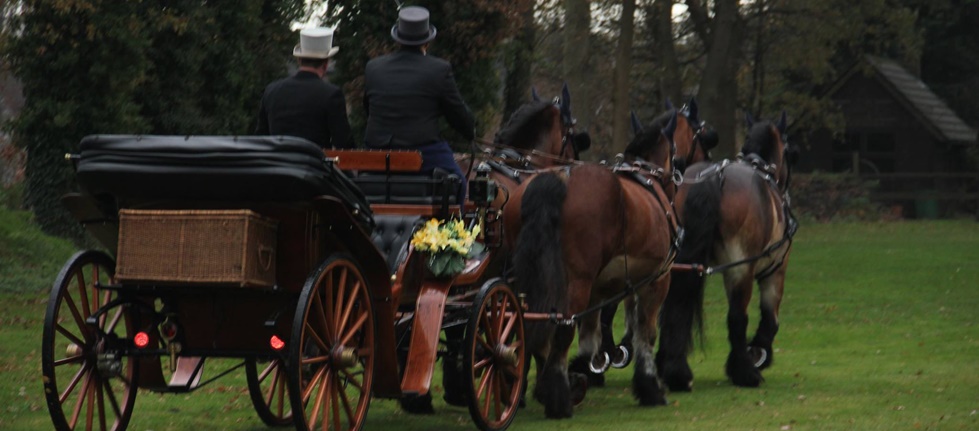 Wir fahren Sie mit der Hochzeitskutsche zwei- oder vierspännig zur Kirche, holen Sie dort auch wieder ab und geben Ihnen ausreichend Zeit, Fotos mit der Kutsche zu machen.