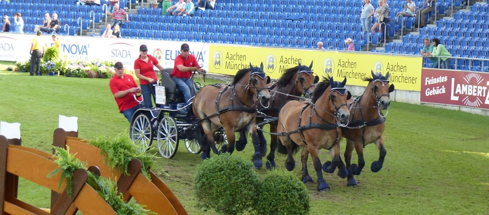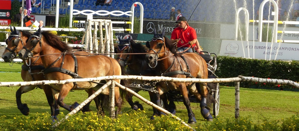 Wir fahren unsere Pferde auch sehr erfolgreich im Sport auf verschiedenen Kaltblut- und Warmblut-Turnieren vom Einspänner bis zum Sechsspänner.